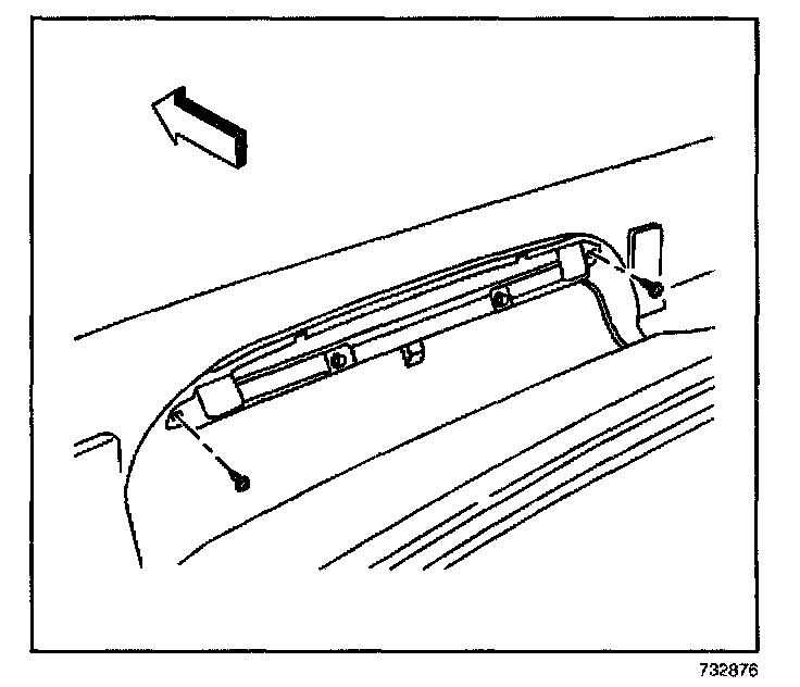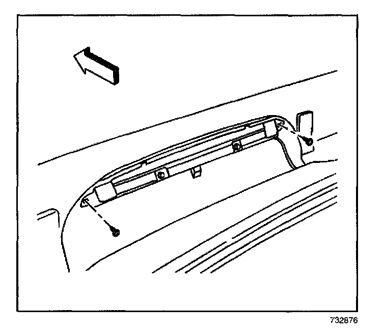 2. Install the 2 screws that retain the high mount stoplamp to the lift gate window reveal molding.