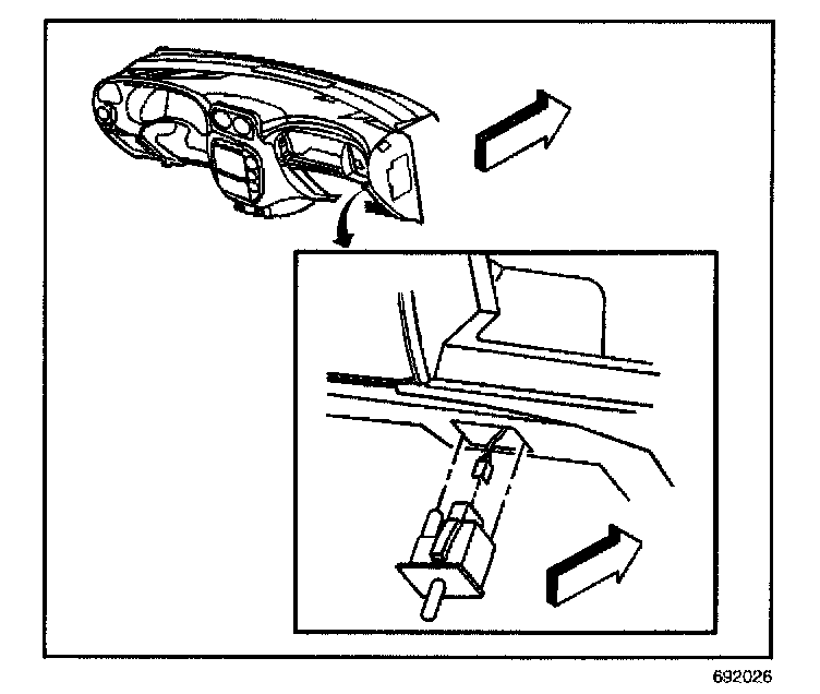 1. Open the instrument panel (IP) compartment and release the stop latch in order to lower IP compartment to the full down position.