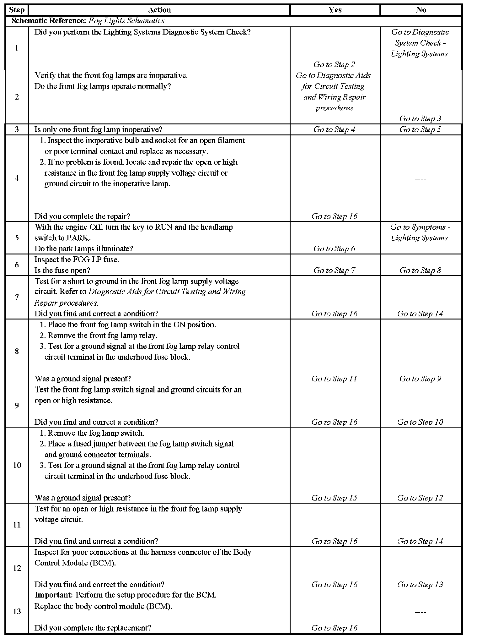 Fog Lamps Inoperative - Steps 1-13: