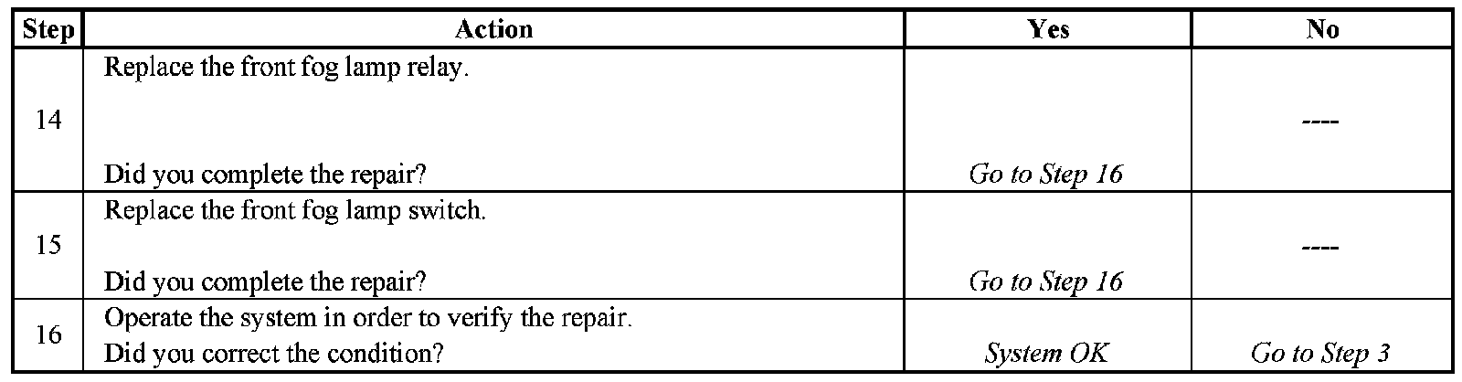 Fog Lamps Inoperative - Steps 14-16: