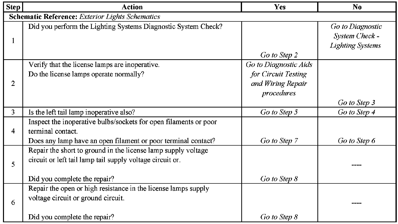 License Lamps Inoperative - Steps 1-6: