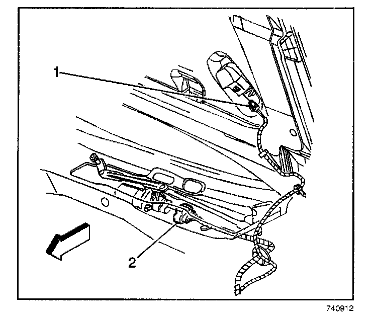 2. Disconnect the underhood lamp electrical connector (1).