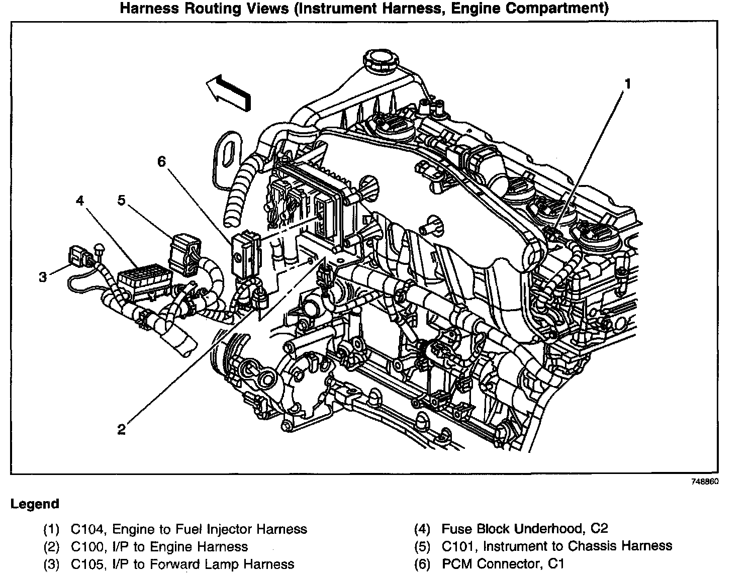 Harness Routing Views (Instrument Harness, Engine Compartment):