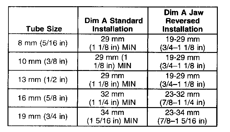 Minimum Tube Length Required Table