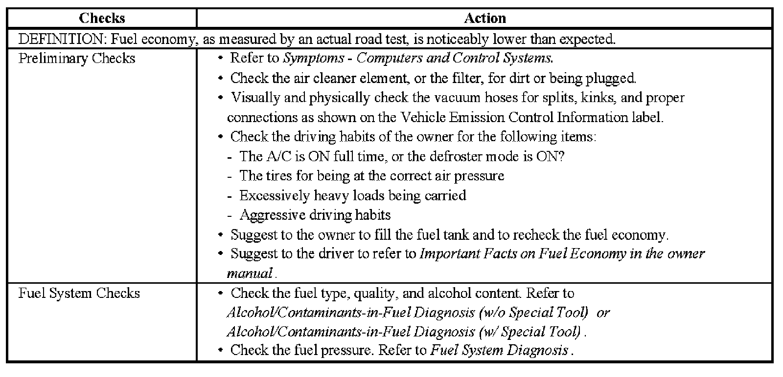 Poor Fuel Economy