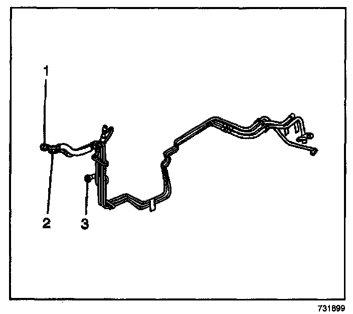 2. Remove the evaporative emission (EVAP) purge pipe (3) from the fuel bundle.