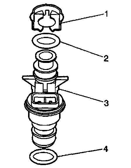 9. Remove the injector lower O-ring seal (4) from the spray tip end of each injector (3).