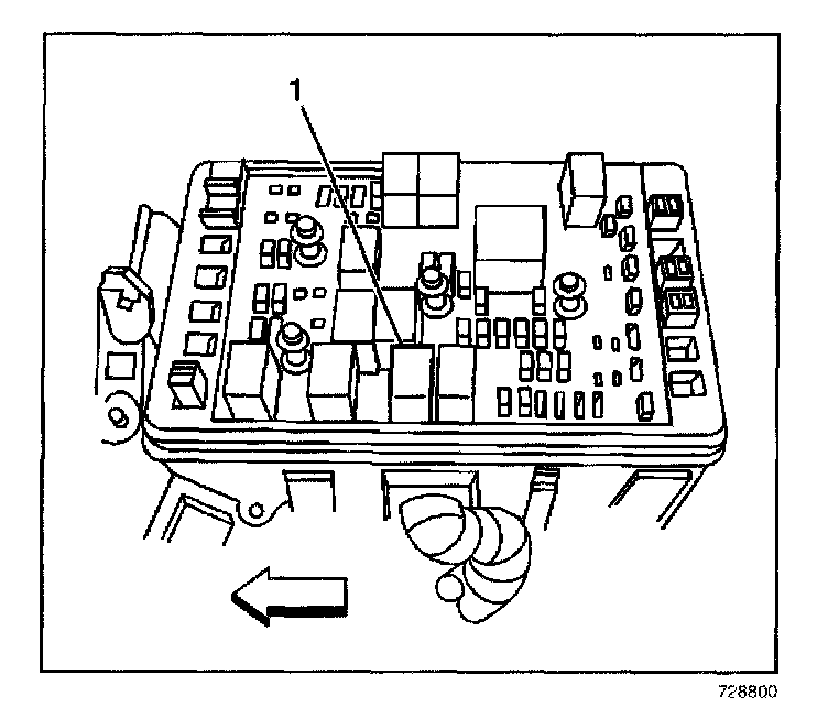 1. Use the J 43244 in order to install the fog lamp relay (1) to the underhood junction block.