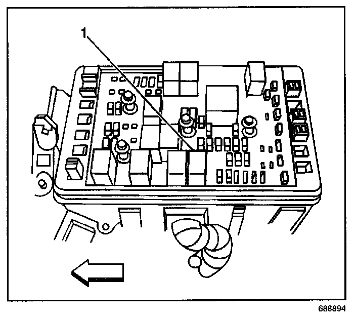 1. Use the J 43244 in order to install the horn relay (1) to the underhood fuse block.