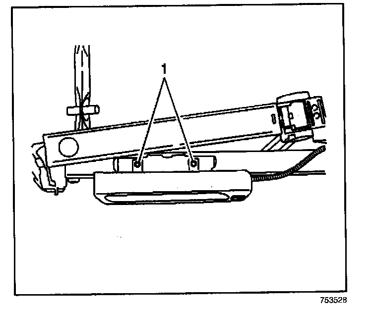 7. Remove the 2 screws (1) that secure the inflatable side impact module to the seat back frame.