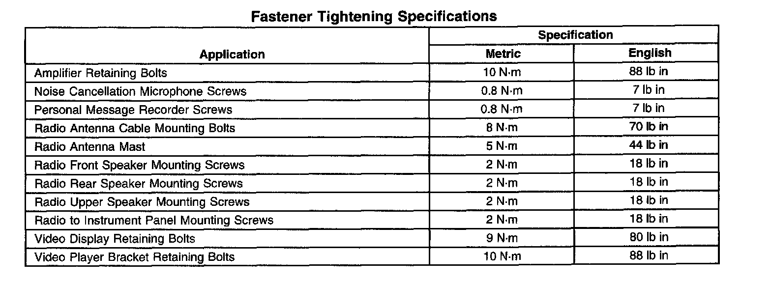 Fastener Tightening Specifications: