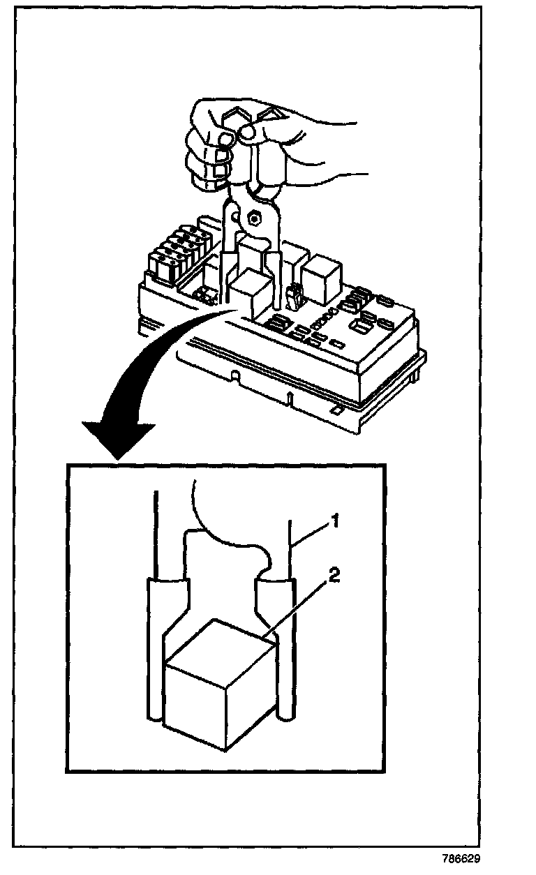 4. Remove the relay (2) from the electrical center.