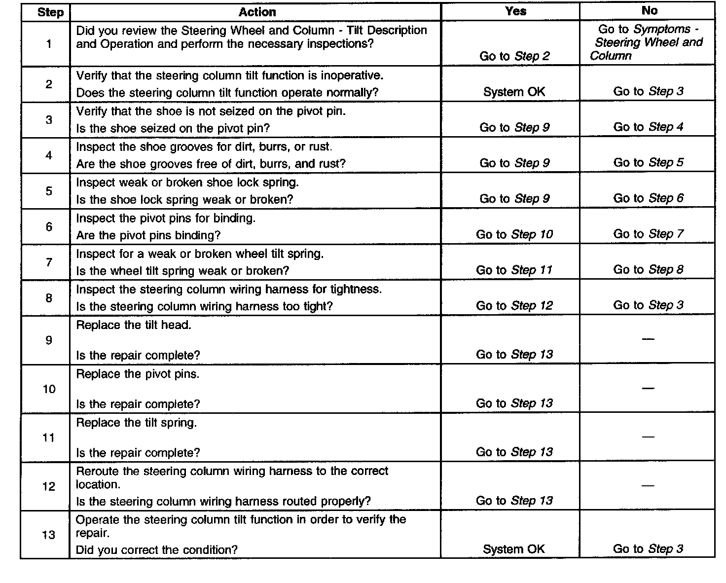Steering Column Tilt Function Inoperative