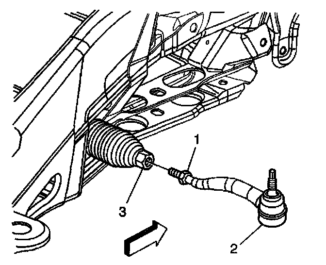 15. Remove the outer tie rods (2) from the inner tie rods (3). Discard jam nut.
