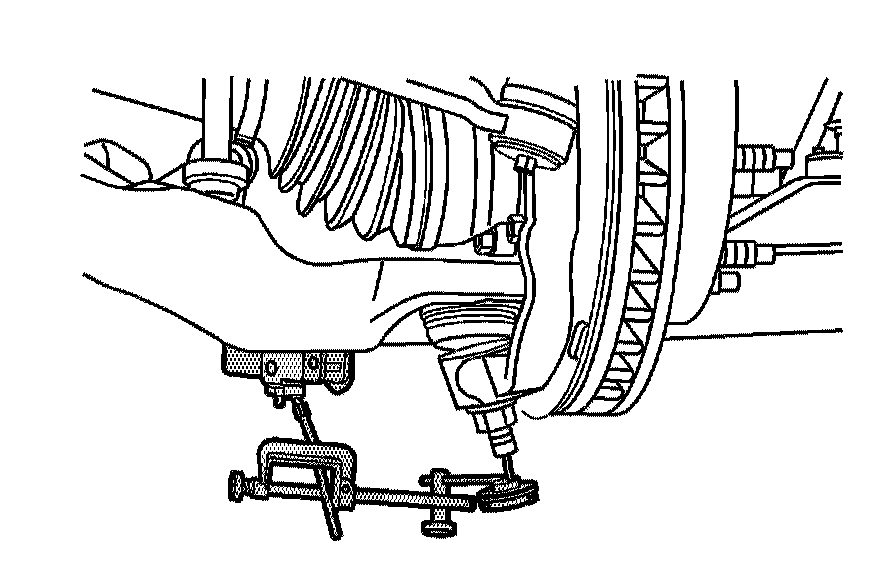 4. Install the J 8001 or a suitable dial indicator in a way to measure the vertical lash in ball joint.