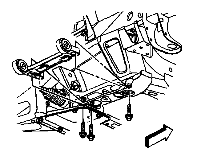 8. Remove the lower control arm bracket mounting bolts from the frame.