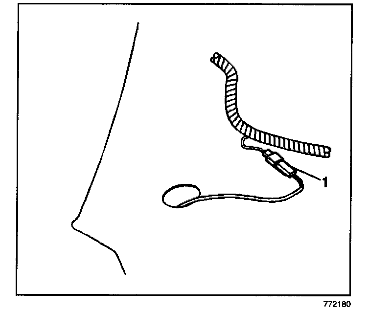 12.1. Reach above the headliner to access the electrical connector (1).