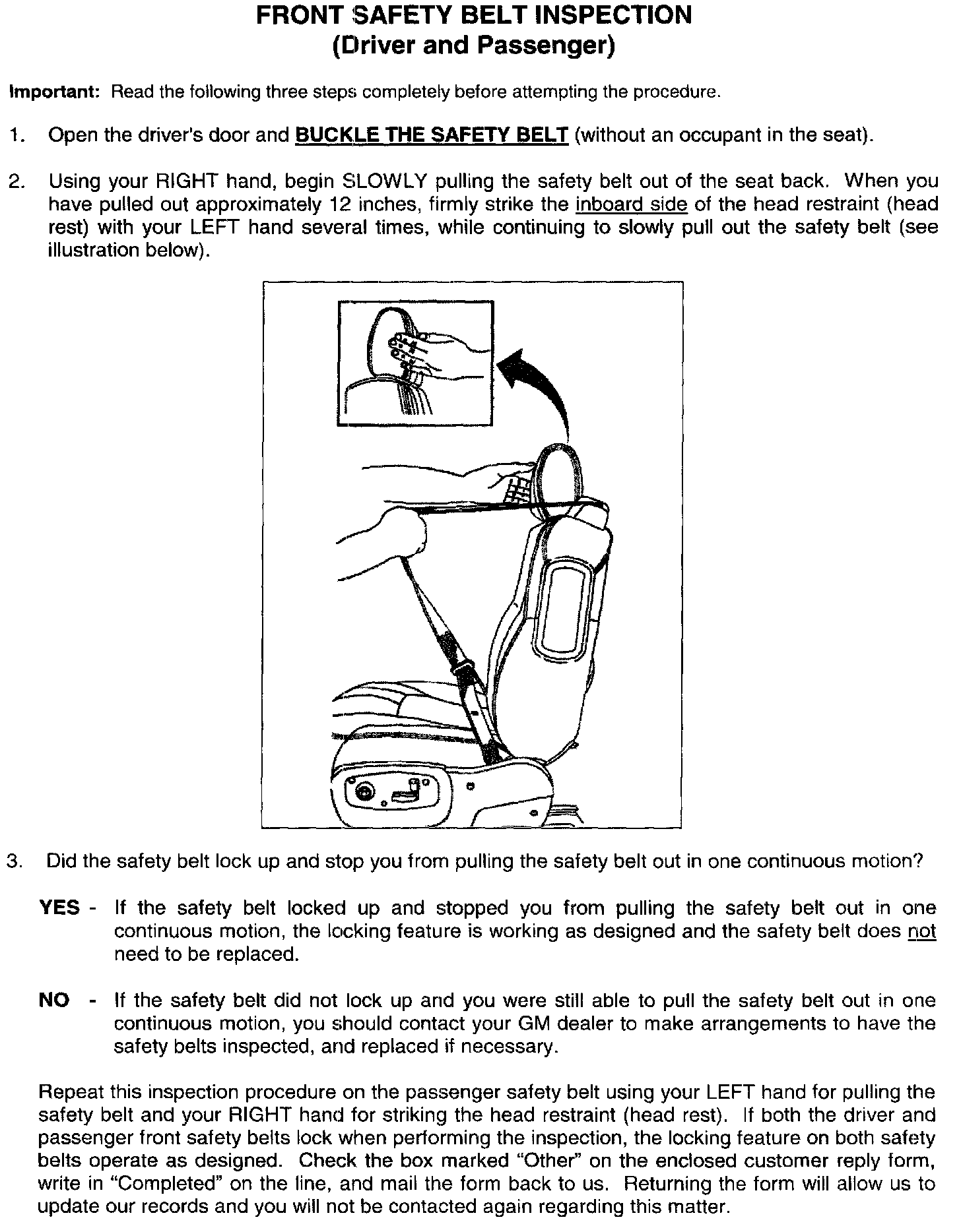 Front Safety Belt Inspection