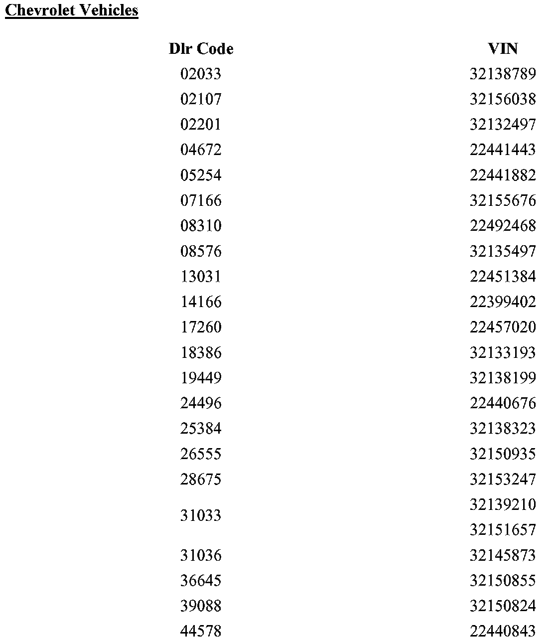 Product Safety Recall - Rear Floor Pan Welds Missing # 02045 - (10/07/2002)Table 1: Chevrolet Vehicles