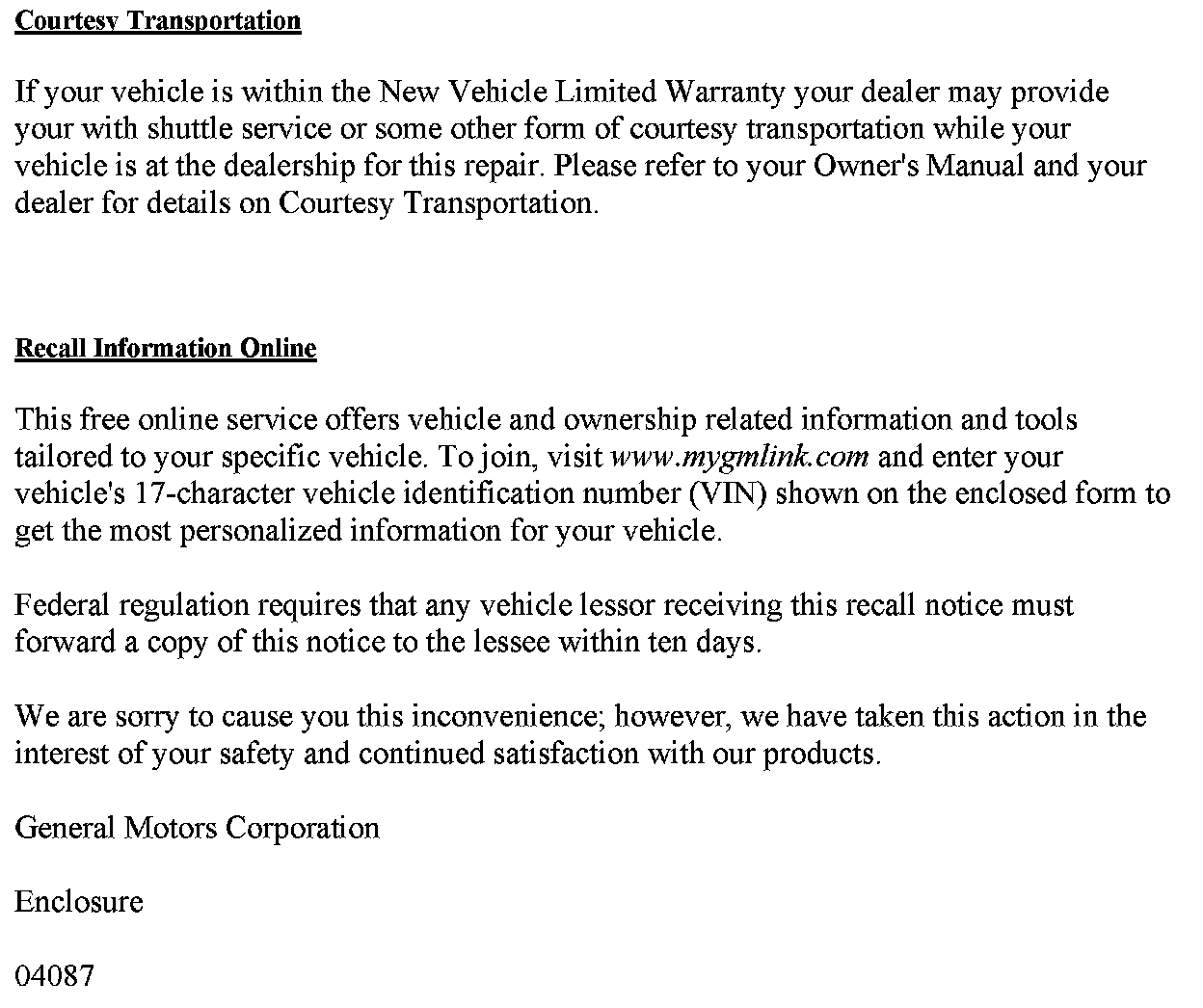 Recall - Tail/Stop Lamp Inspection/Replacement