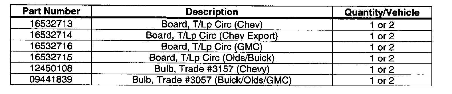 ^ On Chevrolet, Buick, and Oldsmobile vehicles, the stop lamp bulb is located in the UPPER (top) socket in the circuit board.