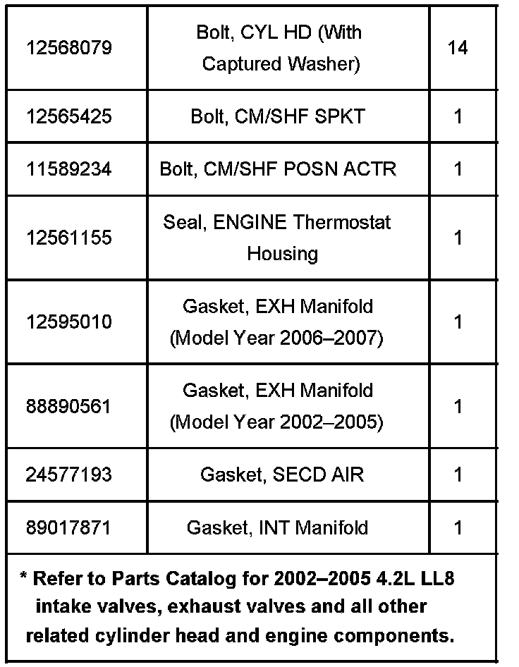 This bulletin is being revised to include additional part information for 2002-2005 cylinder head replacement for the 4.2L LL8 engine. Please discard Corporate Bulletin Number 06-06-01-017B (Section 06 - Engine/Propulsion System).