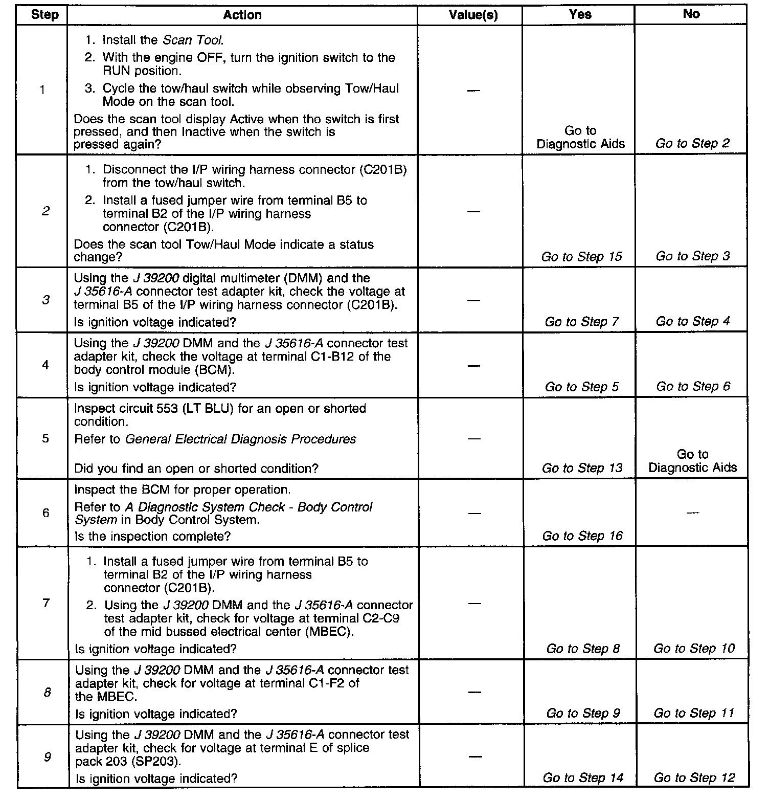 2. This step tests for a faulty tow/haul switch.