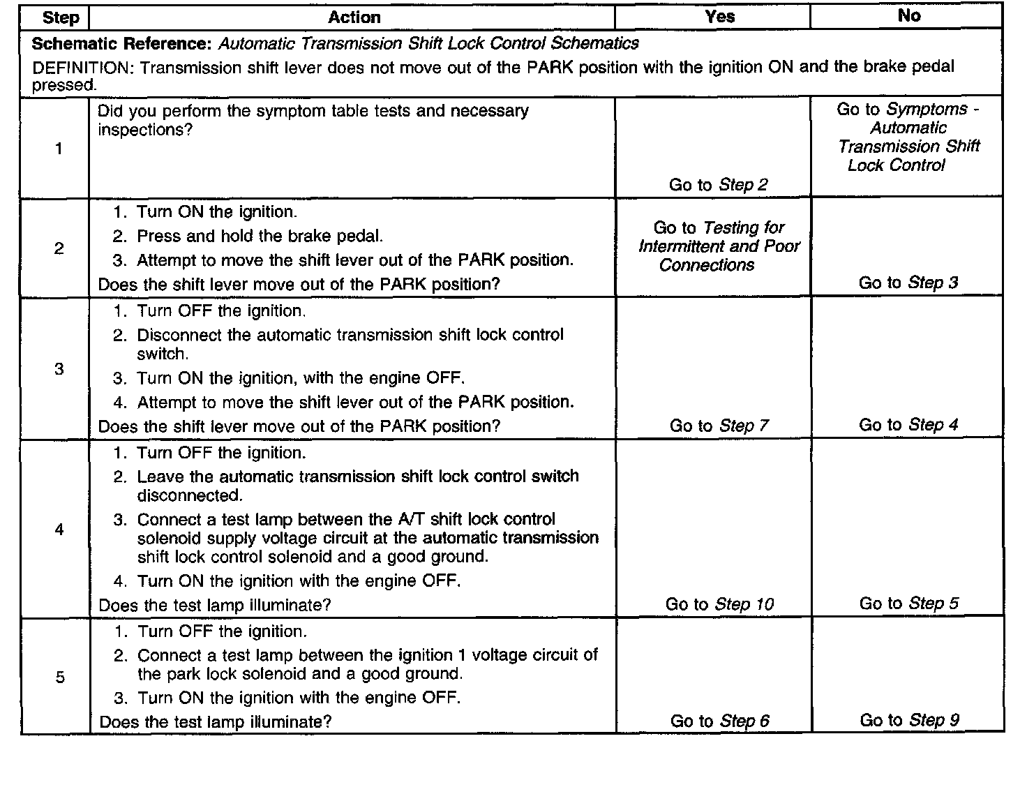 Shift Lever Does Not Move With Brake Pedal Depressed