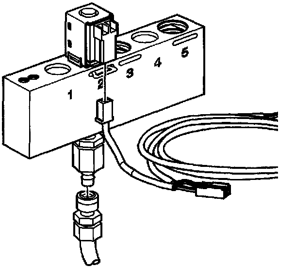 8. Observe the air flow through the solenoid. The flow will completely or nearly completely stop. Replace the solenoid if there continues to be an obvious air leak when the solenoid is energized.