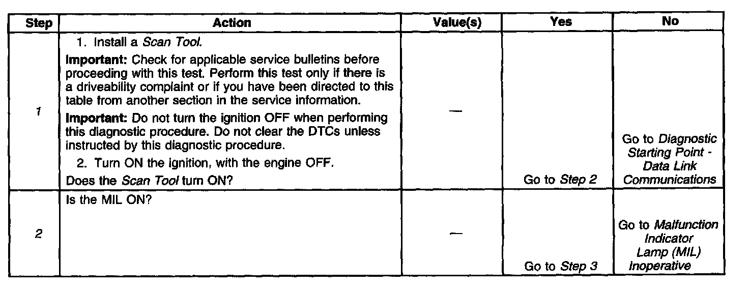 2. The MIL should illuminate whenever the ignition is ON and the engine is not running.