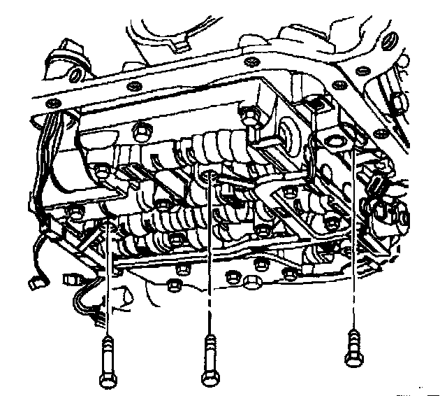 3. Install the valve body bolts which retain the internal wiring harness and install the TCC solenoid retaining bolts.