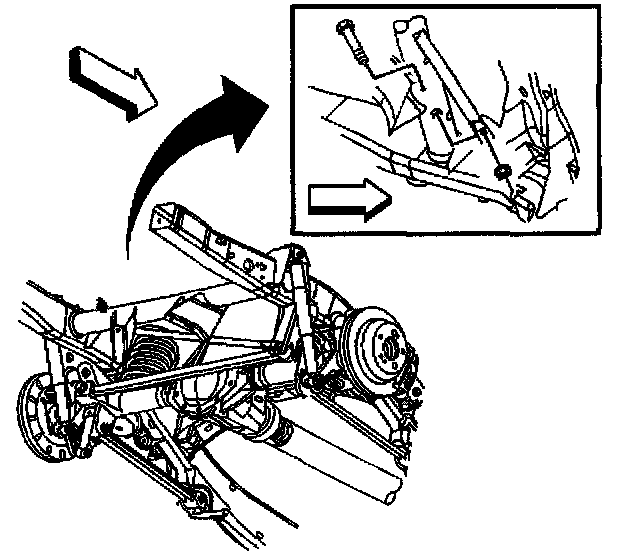 4. Remove the rear axle brace and rear axle tie rod to the rear axle mounting bolt.
