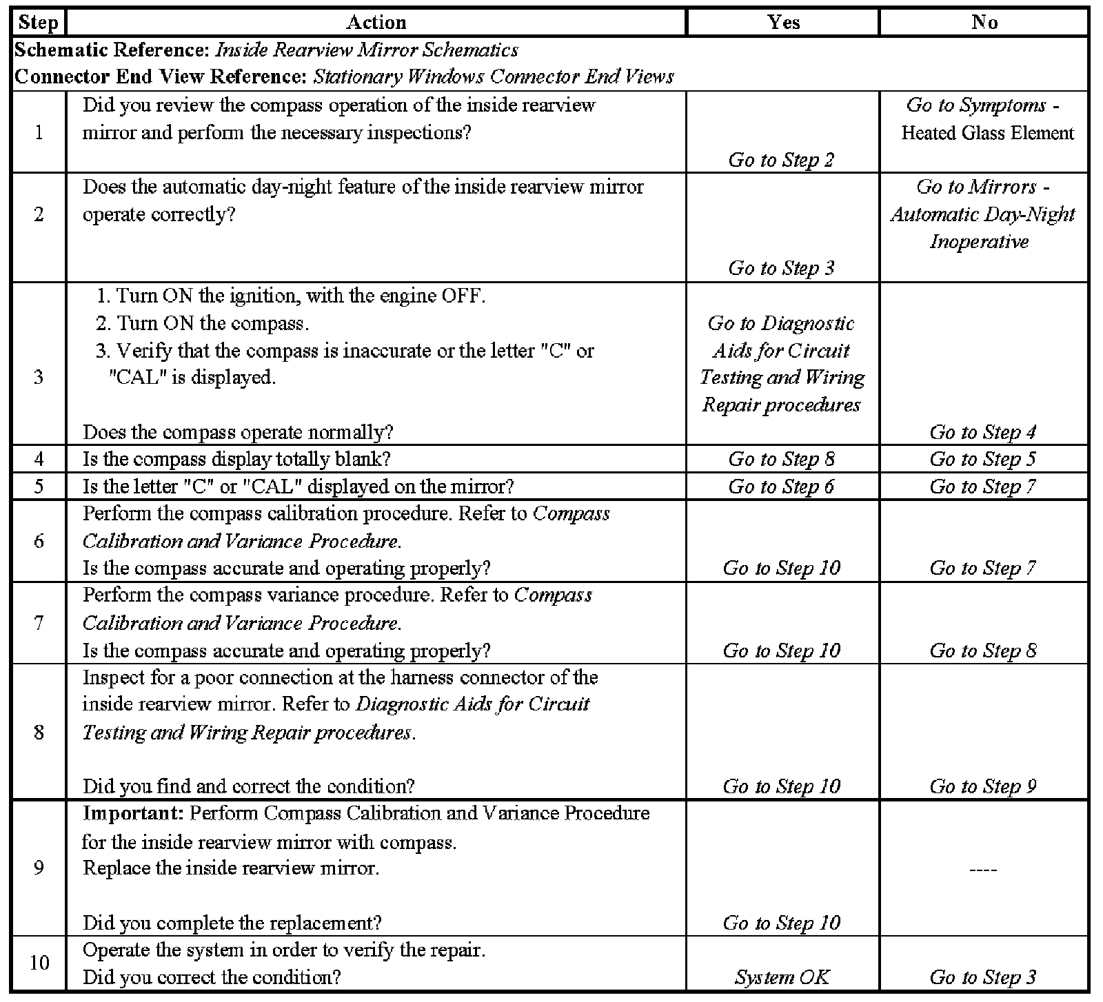 Mirrors - Compass Display Inoperative Or Inaccurate - Steps 1-10: