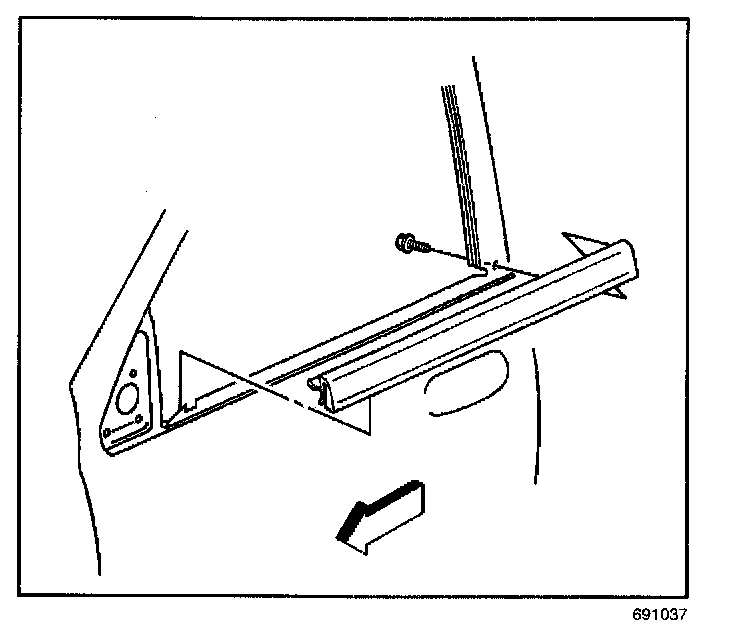1. Install the sealing strip to the pinch-weld flange, starting at the forward edge of the door.