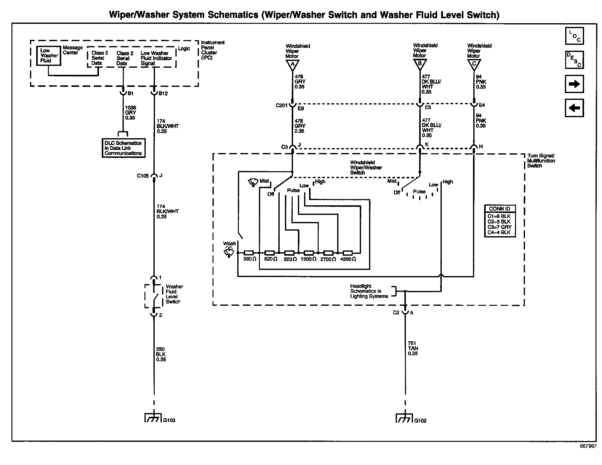 Wiper/Washer System Schematics: Wiper/Washer Switch And Washer Fluid Level Switch:
