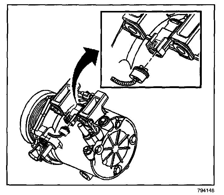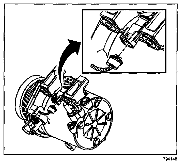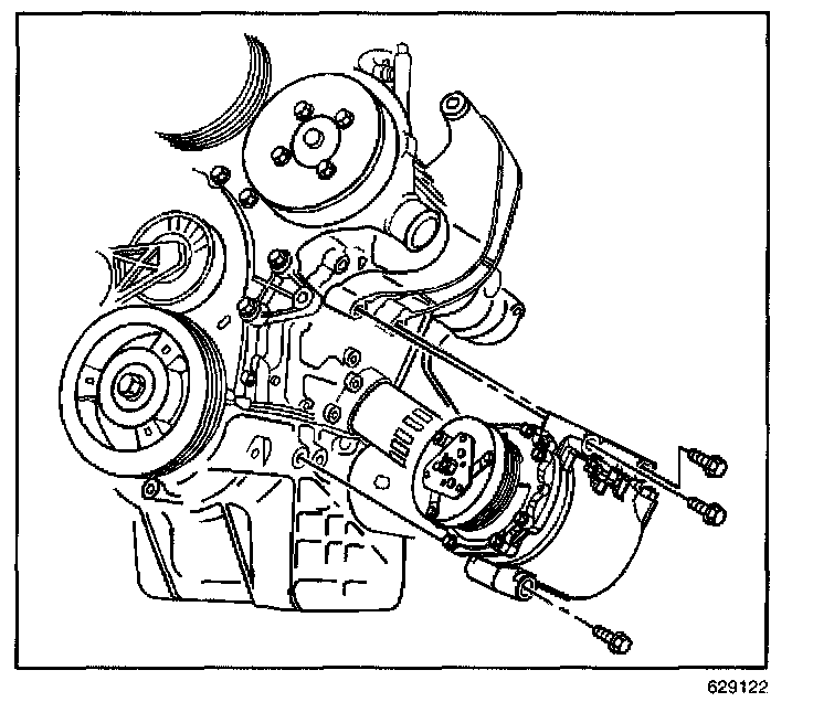 IMPORTANT: The A/C compressor is accessed through the right wheel opening.