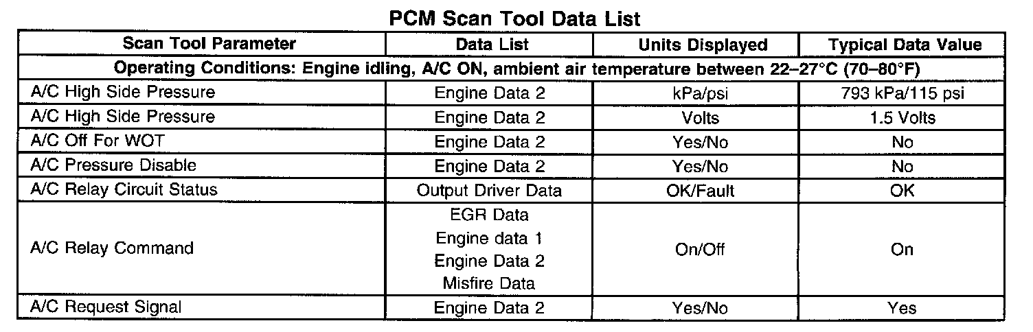 PCM Scan Tool Data List: