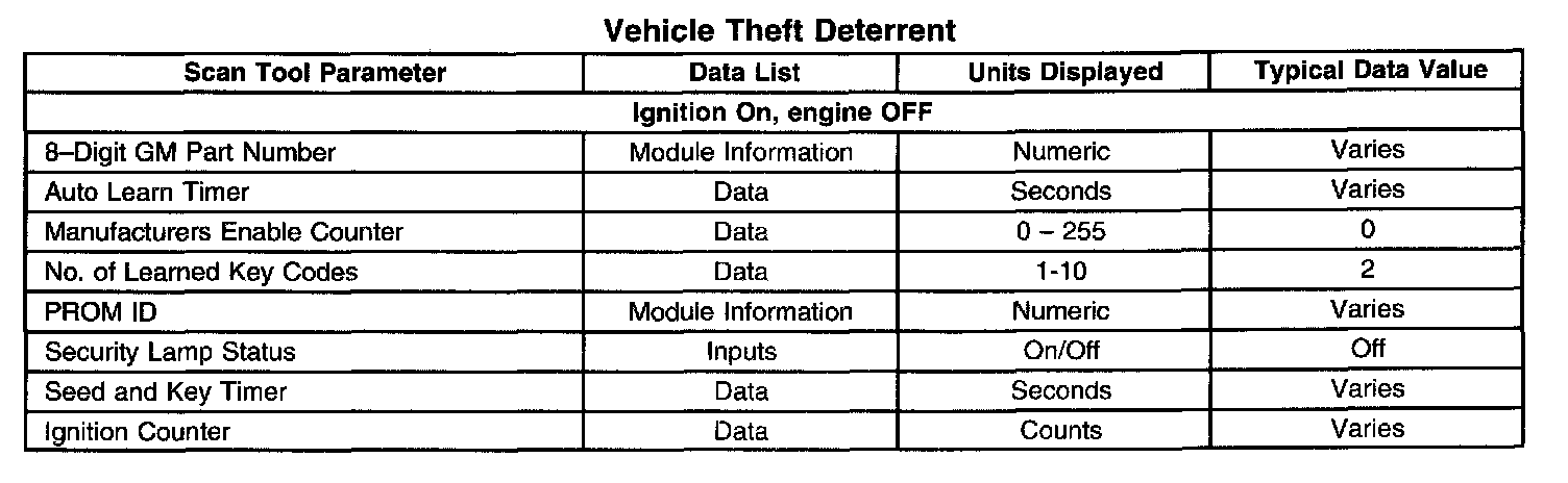 Scan Tool Data List - Antitheft System