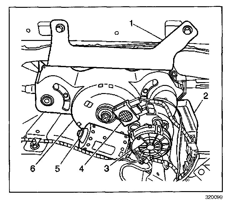 1. Push the PSD actuator control module (2) outboard in order to unhook the control module from the actuator motor.