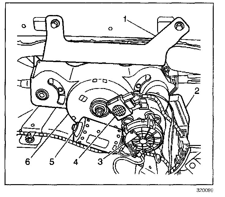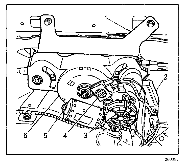 1. Push the PSD actuator control module (2) outboard in order to unhook the control module from the actuator motor.