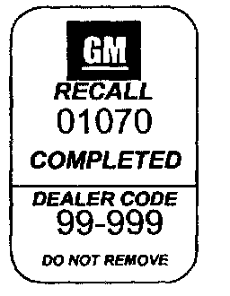 13. Install the GM Recall identification Label.