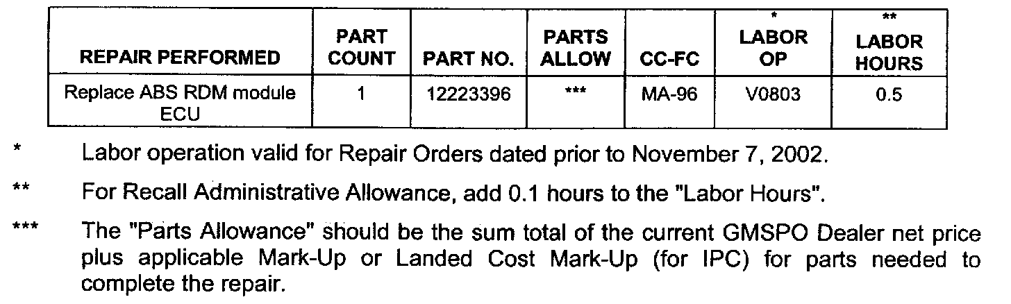 Additional parts, if required, are to be obtained from General Motors Service Parts Operations (GMSPO). Please refer to your "involved vehicles listing" before ordering parts. Normal orders should be placed on a DRO = Daily Replenishment Order. In an emergency situation, parts should be ordered on a CSO = Customer Special Order.