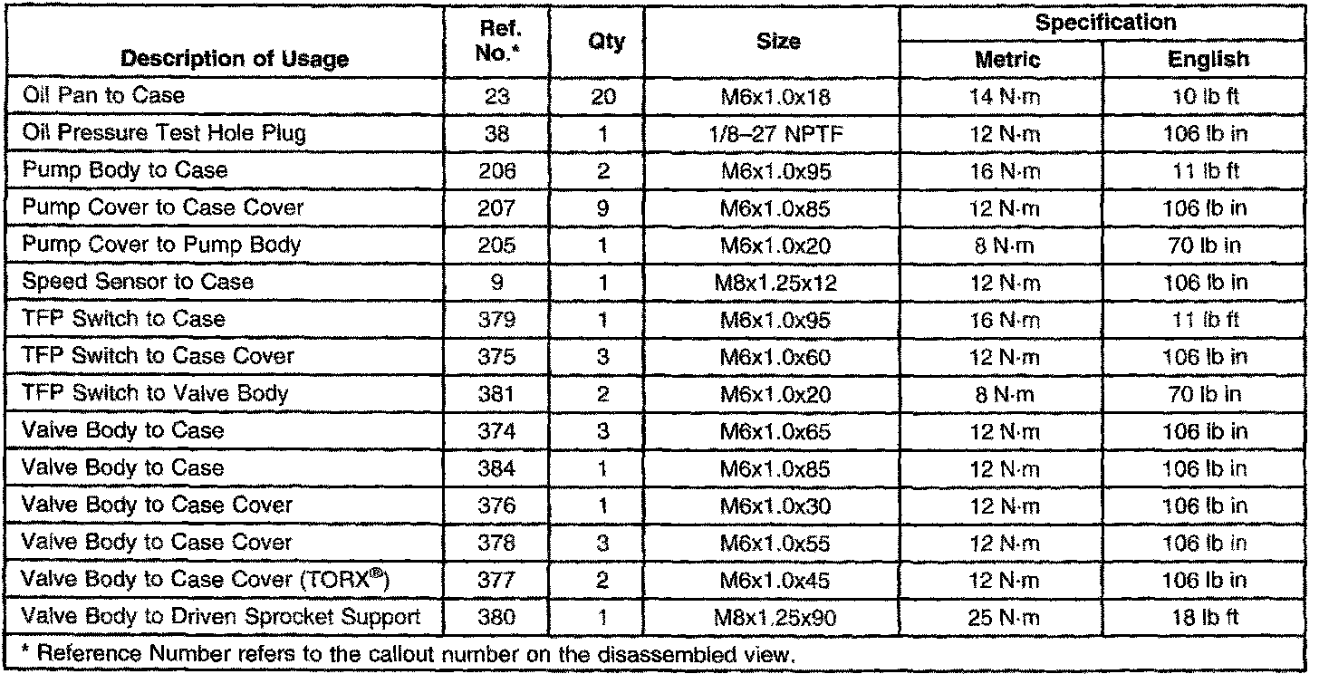 Fastener Tightening Specifications