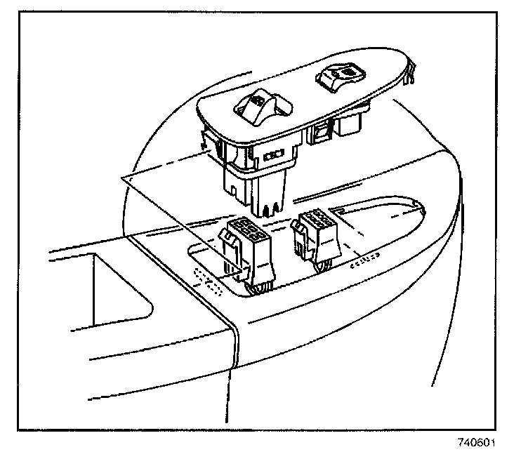 REMOVAL PROCEDURE1. Use a flat-bladed tool at the rear of the switch mounting plate in order to release the clip.
