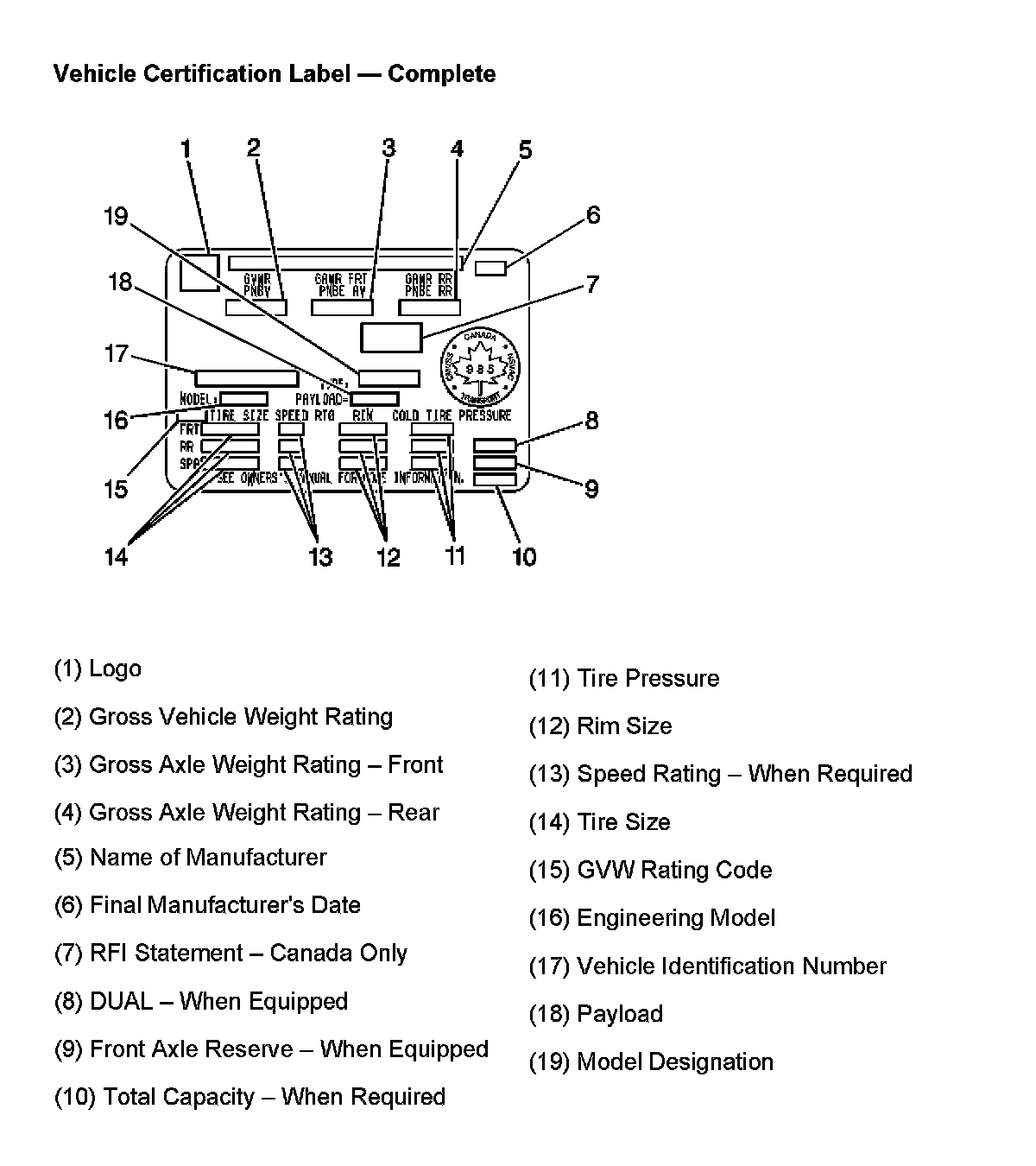 - The Gross Axle Weight Rating (GAWR) - Front and Rear