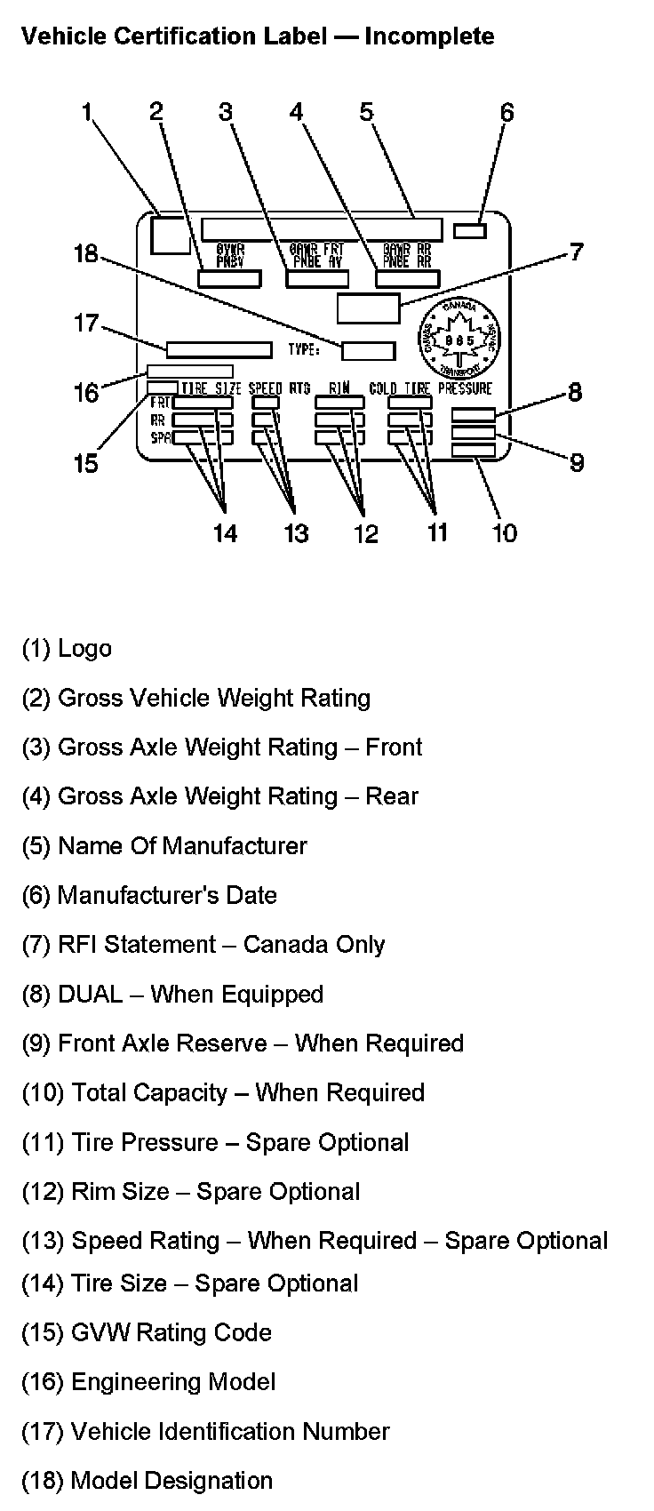 VEHICLE CERTIFICATION LABEL - INCOMPLETE