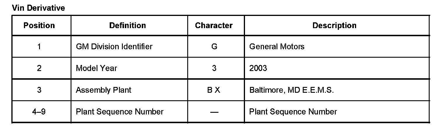 All engines and transmissions are stamped or laser etched with a partial Vehicle Identification Number (VIN), which was derived from the complete VIN. A VIN derivative contains the following nine positions.