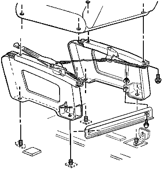 9. Install the nuts that retain the seat to the floor.