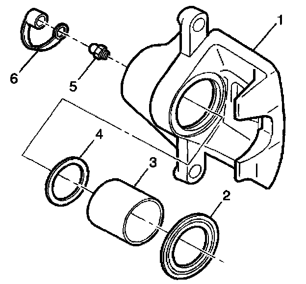 1. Inspect the brake caliper housing (1) for cracks, excess wear, and/or damage. If any of these conditions are present, the brake caliper requires replacement.