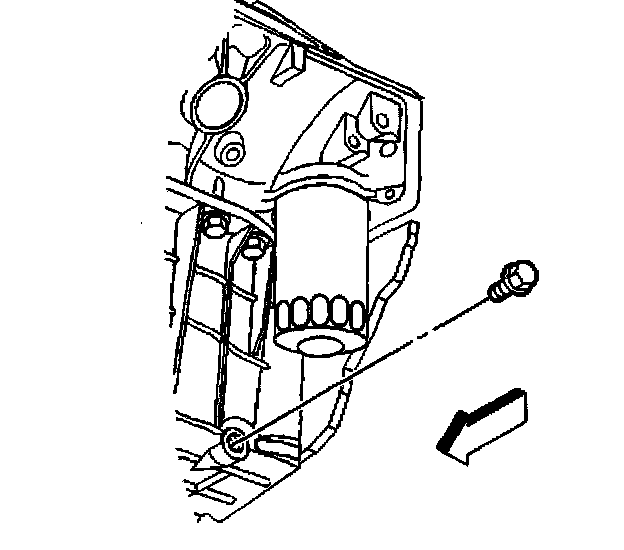 62. Remove the bolt holding the starter wiring harness and the transmission oil cooler pipe bracket to the oil pan.